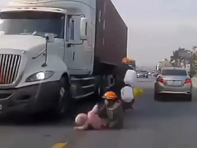 एक खतरनाक वीडियो सामने आया है। वीडियो महज 12 सेकंड का है, 12 सेकंड में एक मां कैसे तेज रफ्तार ट्रक के नीचे आने से अपने बच्चे को बचाती है यह देखकर हर कोई हैरत में पड़ने वाला है। यह मां ठीक सुपरहीरोइन की तरह से अपने बच्चे को बचाती है।