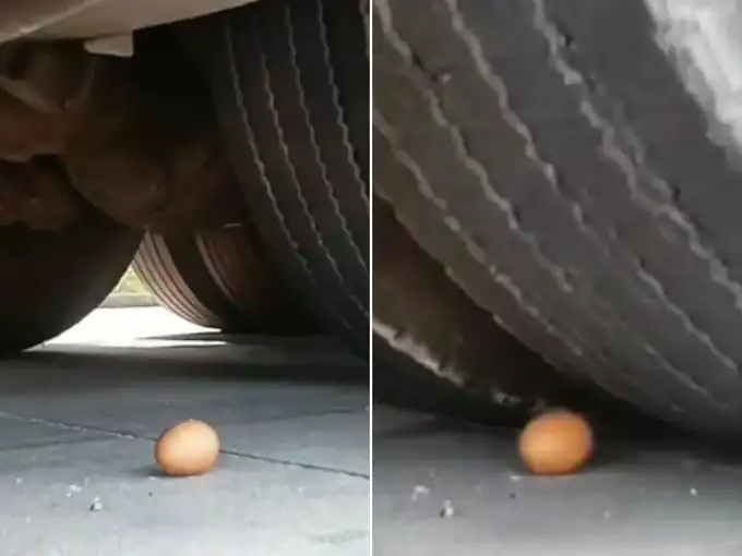 यह वीडियो दो इंस्टाग्राम हैंडल ने मिलकर शेयर किया है। वैसे तो अंडा बहुत आसानी से टूट जाता है। इसलिए आप यही सोच रहे होंगे कि ऊपर से इतना हैवी ट्रक गुजर गया पर अंडा टूटा क्यों नहीं। इसके पीछे का गणित बड़ा ही सिम्पल है।
