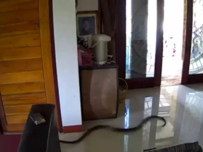 इसका वीडियो सामने आया है। इसमें देखा जा सकता है कि एक युवती अपने घर की चौखट पर बैठी होती है। वो अपने बालों को ठीक कर रही है। लेकिन तभी वो अचानक से उठ जाती है, एक सांप कैमरे में नजर आता है और तेज स्पीड से फर्श पर रेंगते हुए घर के अंदर घुस जाता है। viralhog ने इसका वीडियो अपने इंस्टा पेज पर शेयर किया है।