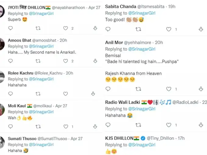 इस वीडियो को देखकर बहुत से यूजर्स ने अपनी प्रतिक्रिया दी। एक यूजर ने लिखा- क्या स्टाइल है। जबकि इनका अंदाज देखकर कुछ लोगों के चेहरे पर मुस्कान भी आ गई। वहीं एक बंदे ने लिखा- बेमिसाल... बड़े ही टैलेंटेड लोग हैं... जन्नत का राजेश खन्ना। वैसे आपको पसंद आया इस कश्मीरी का पुष्पा स्टाइल? कमेंट सेक्शन में जरूर बताएं।