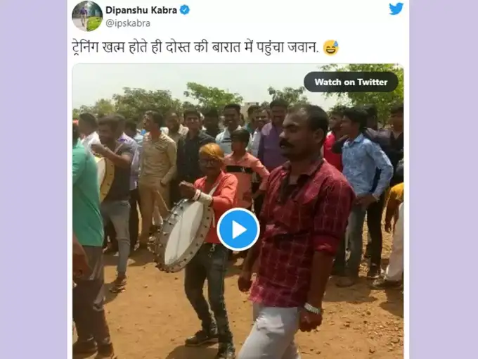 आईपीएस अधिकारी ने यह वीडियो शेयर किया और लिखा- ट्रेनिंग खत्म होते ही दोस्त की बारात में पहुंचा जवान। अबतक इस क्लिप को 71 हजार से अधिक व्यूज और 5 हजार से ज्यादा लाइक्स मिल चुके हैं। साथ ही, सैकड़ों यूजर्स ने बंदे का डांस देख गजब के कमेंट्स कर रहे हैं।